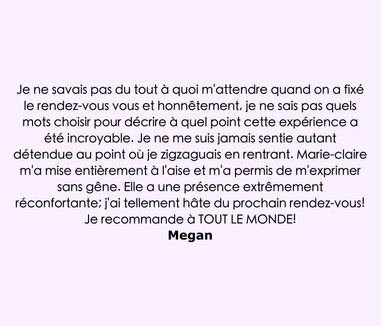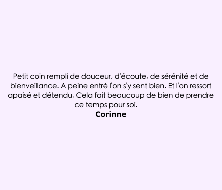 Je me réjouis de vous accueillir afin de vous permettre de prendre soin de vous lors d’une séance individuelle personnalisée pour un moment unique en vous accompagnant avec douceur et bienveillance.