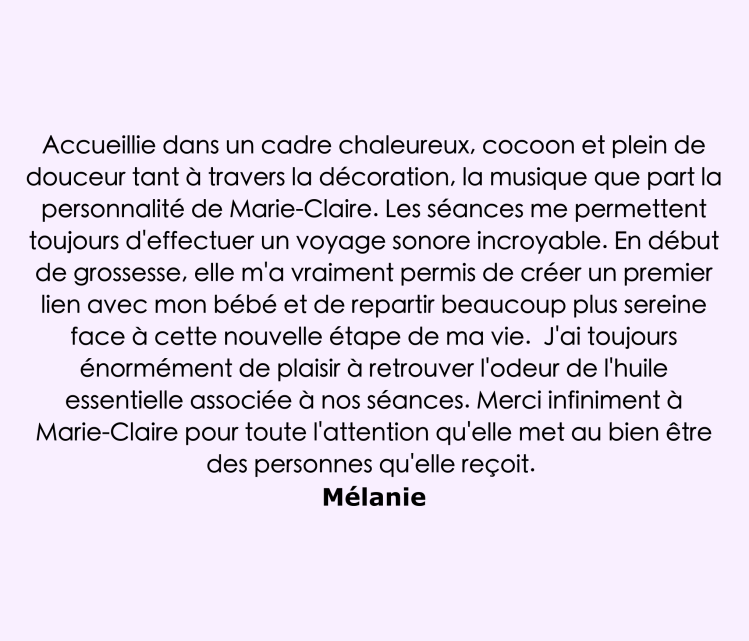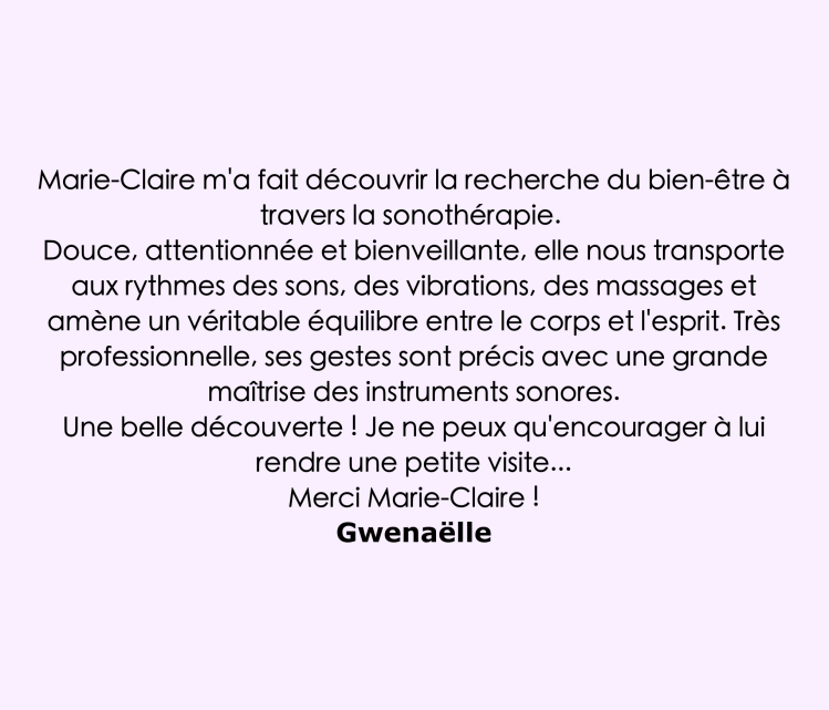 … est une pratique thérapeutique qui utilise les sons et les vibrations pour favoriser le bien-être physique, émotionnel et mental. Cette méthode peut aider à réduire le stress et les angoisses, améliorer la qualité du sommeil, soulager certaines douleurs chroniques, renforcer la concentration et favoriser une relaxation profonde. En intégrant des éléments comme les huiles essentielles et le toucher, les effets apaisants sont amplifiés, stimulant ainsi les sens et harmonisant le corps et l’esprit.